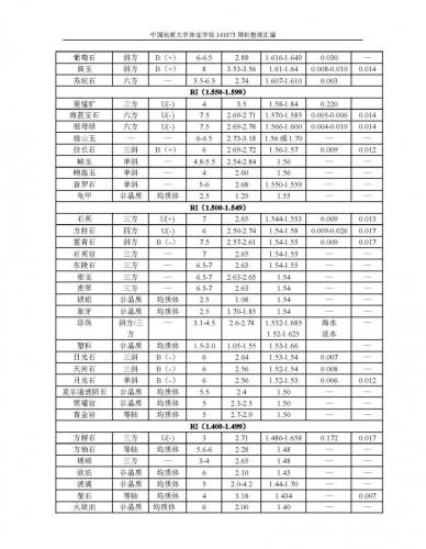 宝石折射率、比重、硬度、色散值等常数表